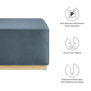 Tilden Large 28″ Square Performance Velvet Upholstered Ottoman in Cadet Blue Natural by Modway