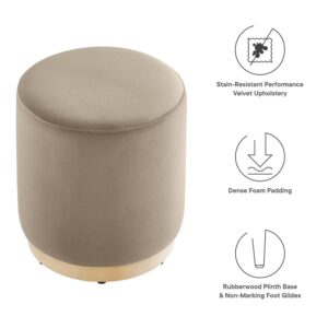 Tilden 16″ Round Performance Velvet Upholstered Ottoman in Taupe Natural by Modway