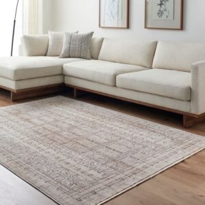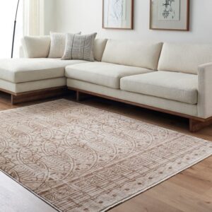 Hester Ornate Turkish 5×8 Vintage Area Rug in Tan and Walnut Brown by Modway