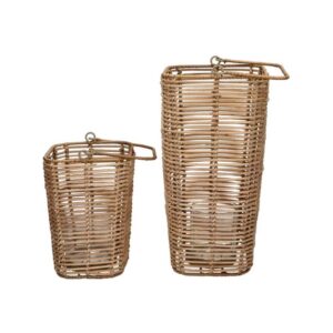 Rattan Cube Natural Set of 2 Lanterns by Pomax