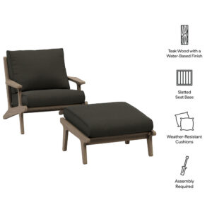 Wren Outdoor Patio Teak Wood Armchair and Ottoman Set in Natural Driftwood by Modway