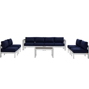 Shore 6 Piece Outdoor Patio Aluminum Sectional Sofa Set in Silver Navy by Modway