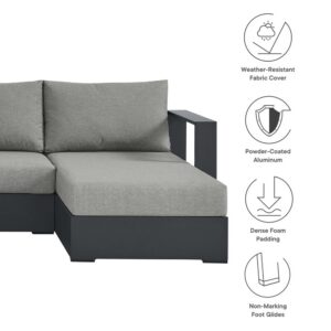 Tahoe 3-Piece Outdoor Patio Powder-Coated Aluminum Left-Facing Chaise Sectional Sofa Set in Gray Charcoal by Modway