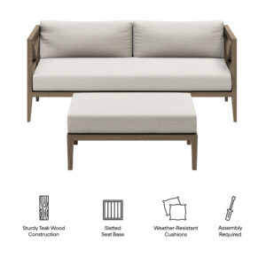 Northlake Outdoor Patio Teak Wood Loveseat and Ottoman Set in Pebble by Modway
