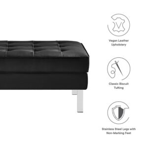 Loft Tufted Vegan Leather Ottoman in Silver Black by Modway