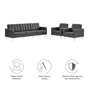 Loft 3-Piece Tufted Vegan Leather Furniture Set in Silver Black by Modway