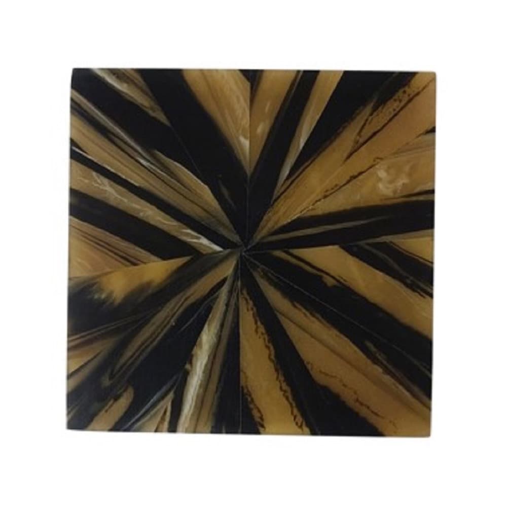 This set of four coasters features a stylish black and mustard yellow color palette, accented with intricate horn inlay, adding a touch of elegance to your tabletops. Crafted from MDF, these coasters are durable and functional, providing a stylish way to protect surfaces from moisture and heat damage. With their unique design and dimensions, they make a charming addition to your home decor while serving a practical purpose. -Indoor Only -Water Safe: No -Dishwasher Safe: No -Food Safe: No