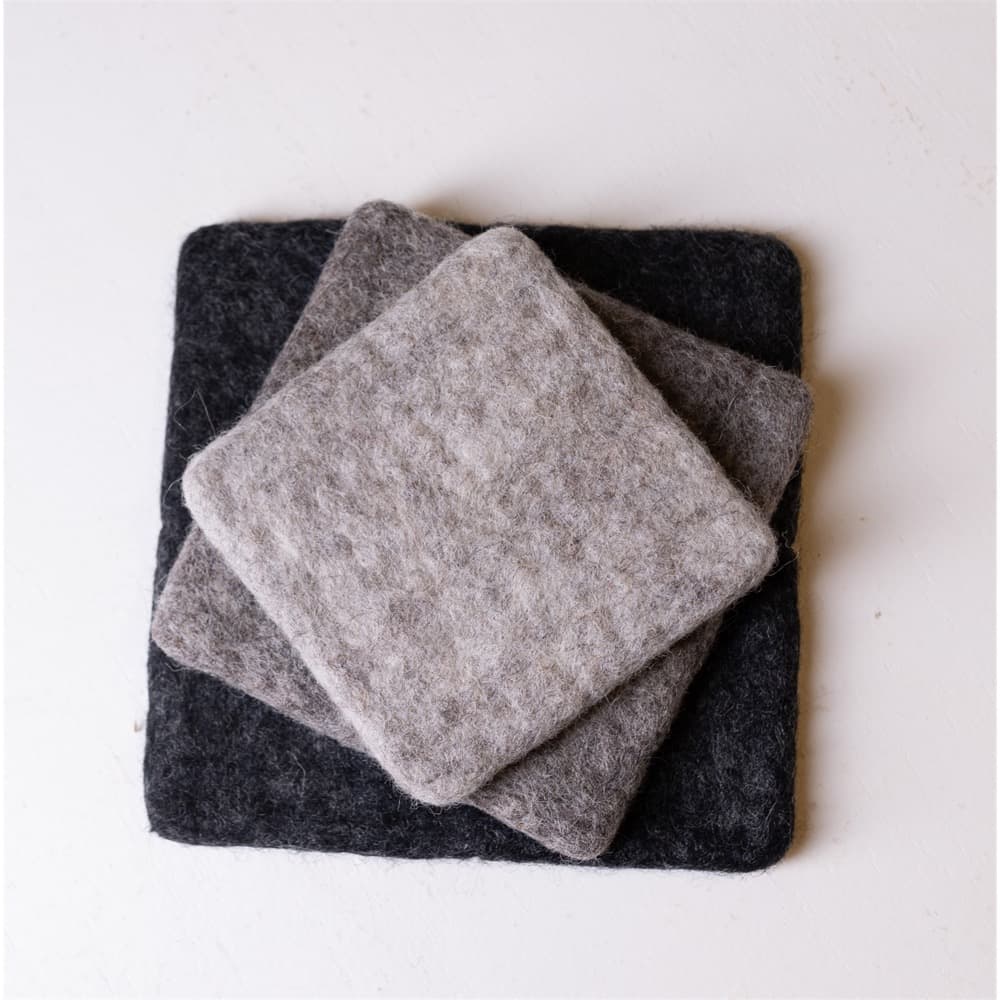 100 % Sheep wool crafted in Nepal, the wool is fine and dense with a good luster creating these one-of-a-kind pieces.