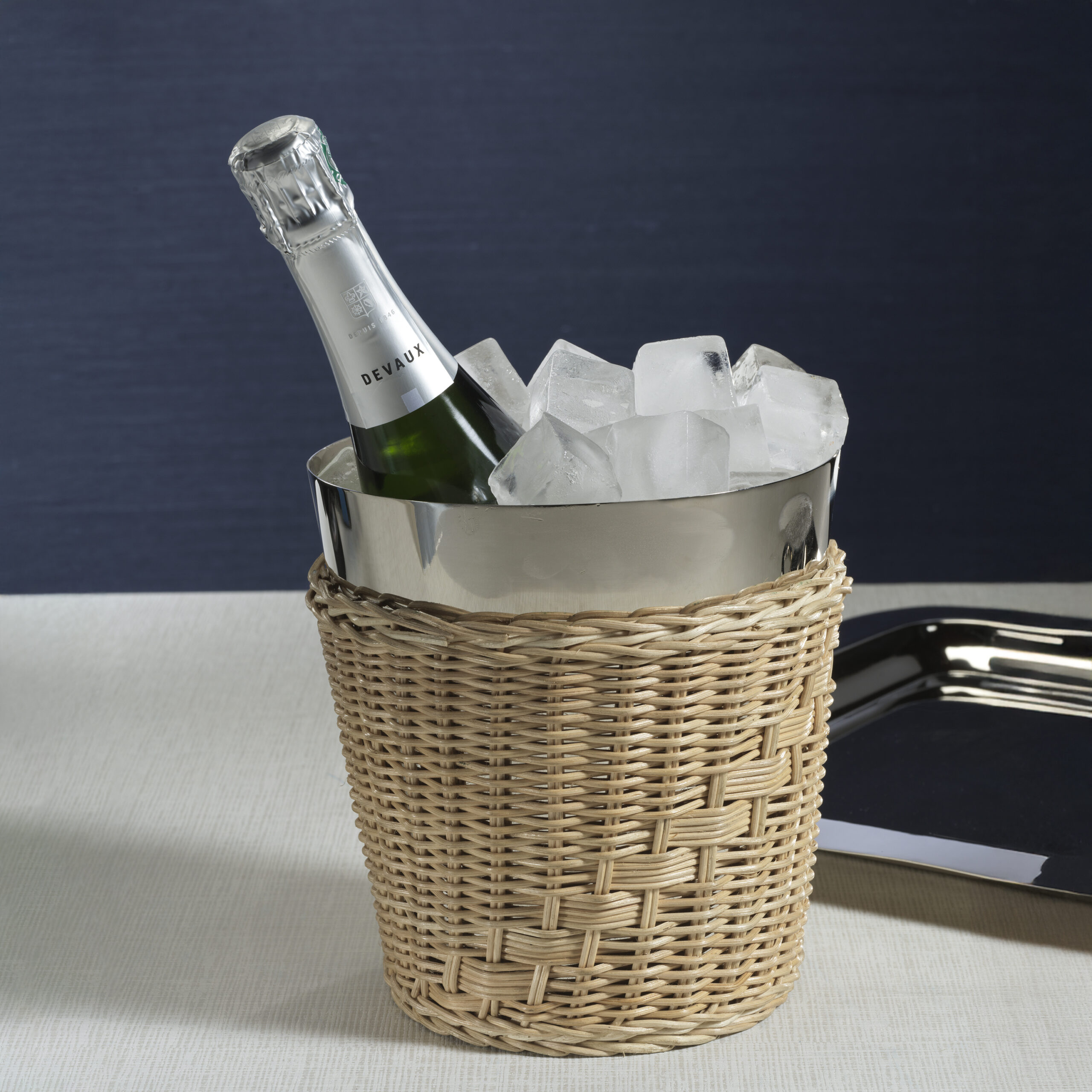 A stunning fusion of natural woven rattan and nickel-finished steel, this wine bucket adds a rustic yet refined touch to any occasion. The woven rattan cane in a light natural finish wraps around the steel frame, creating an elegant contrast. Due to the nature of rattan, slight variations in color and texture make each piece unique.
