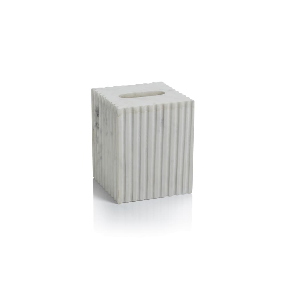 Camogli Fluted White Marble Tissue Box by Zodax