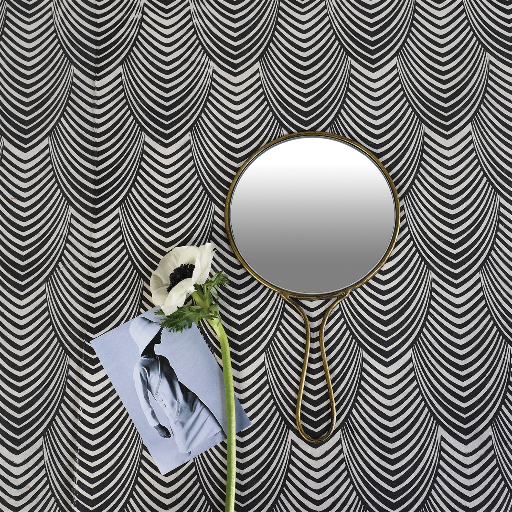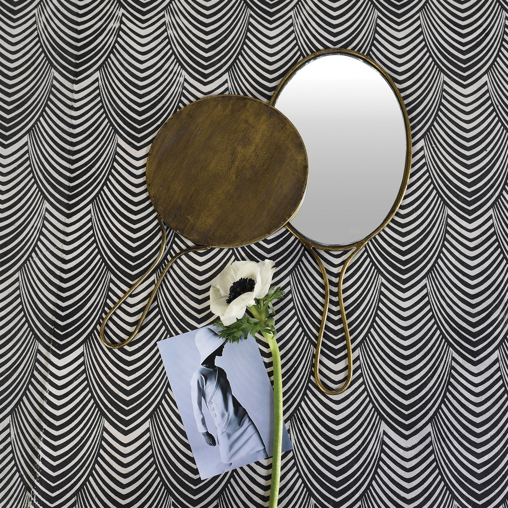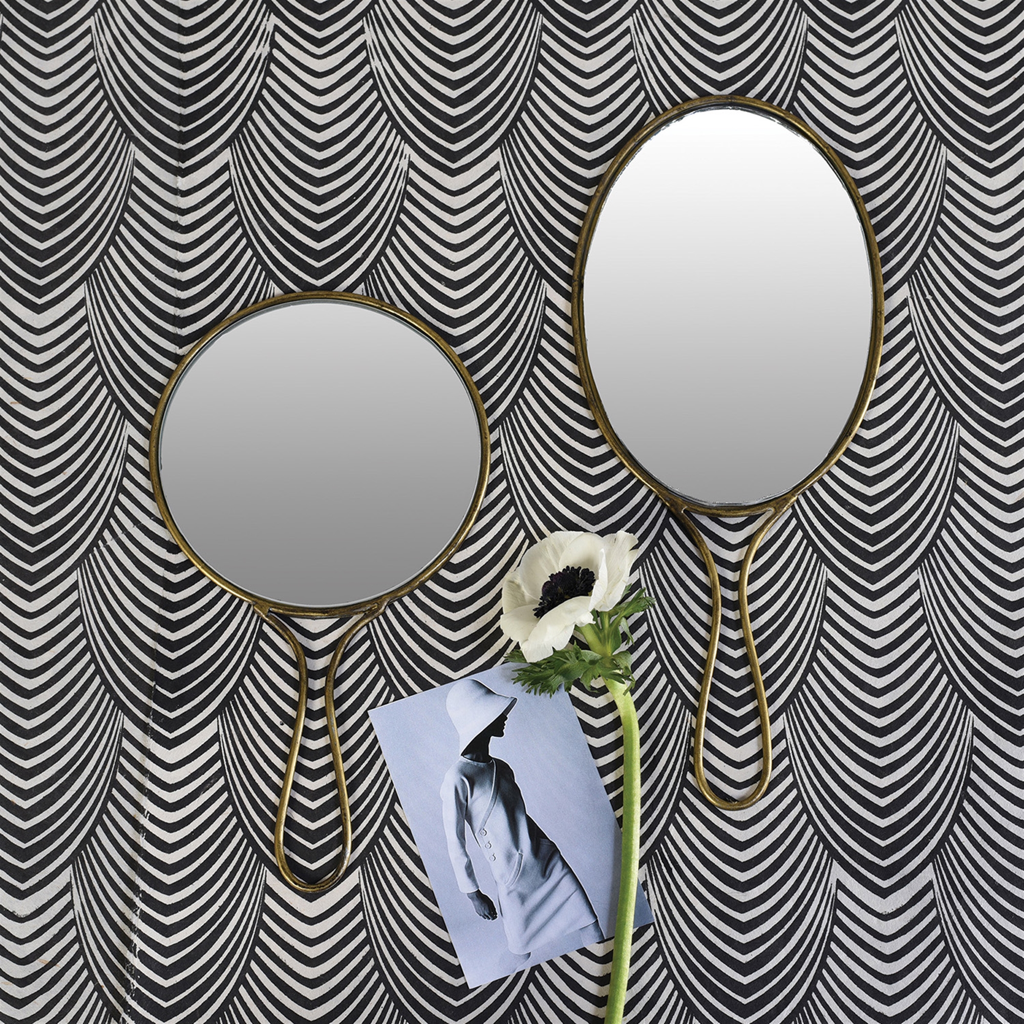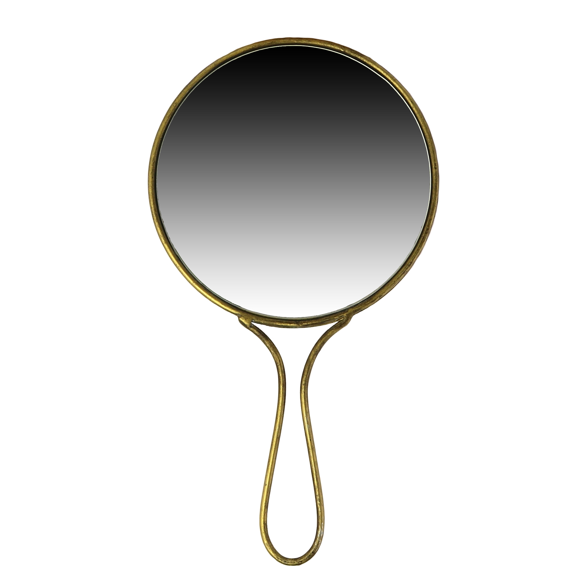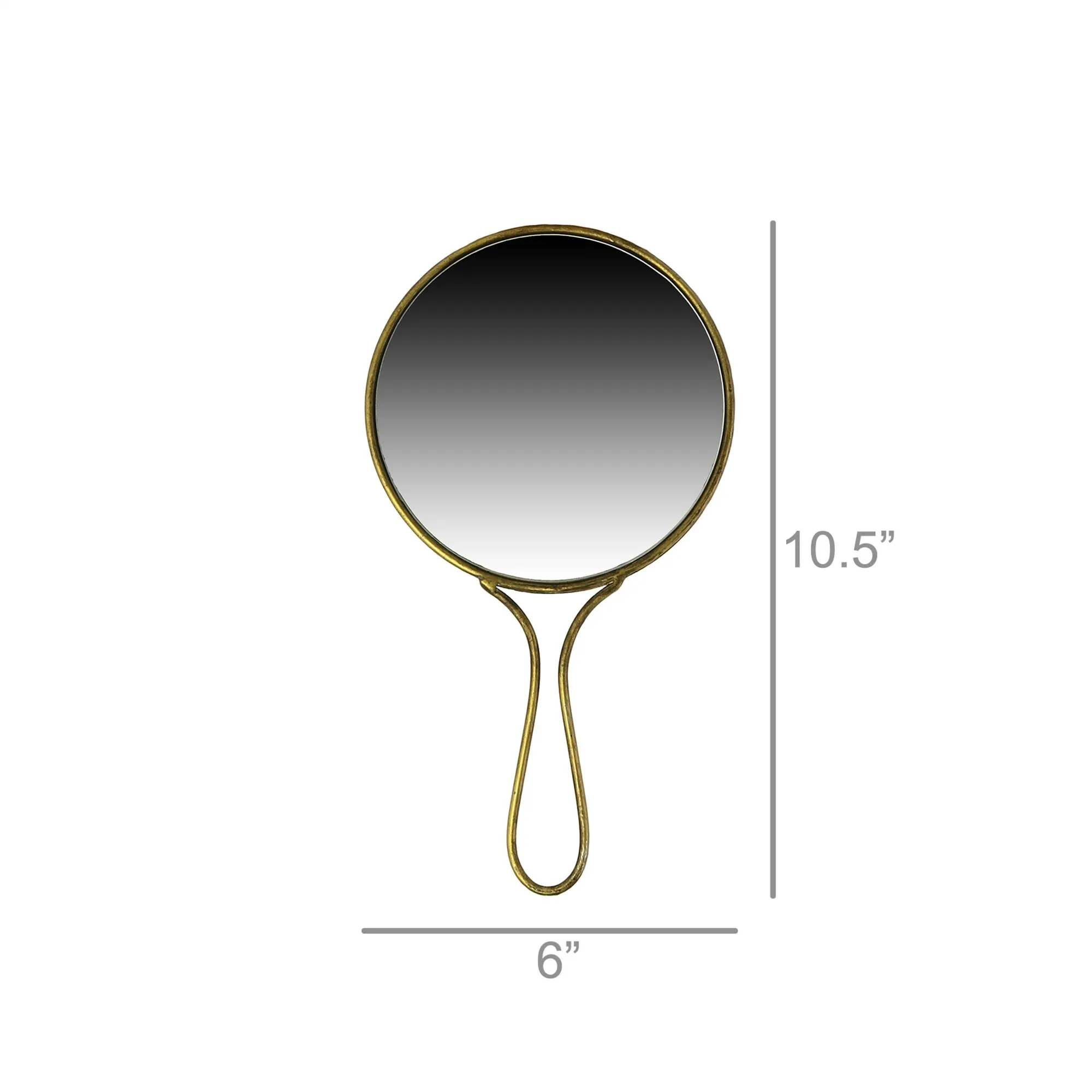 Brass toned metal offsets reflective mirror in these classic yet modern hand mirrors.