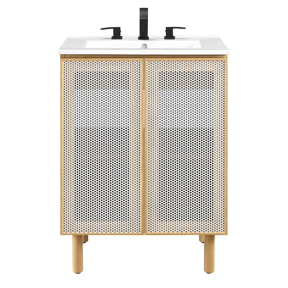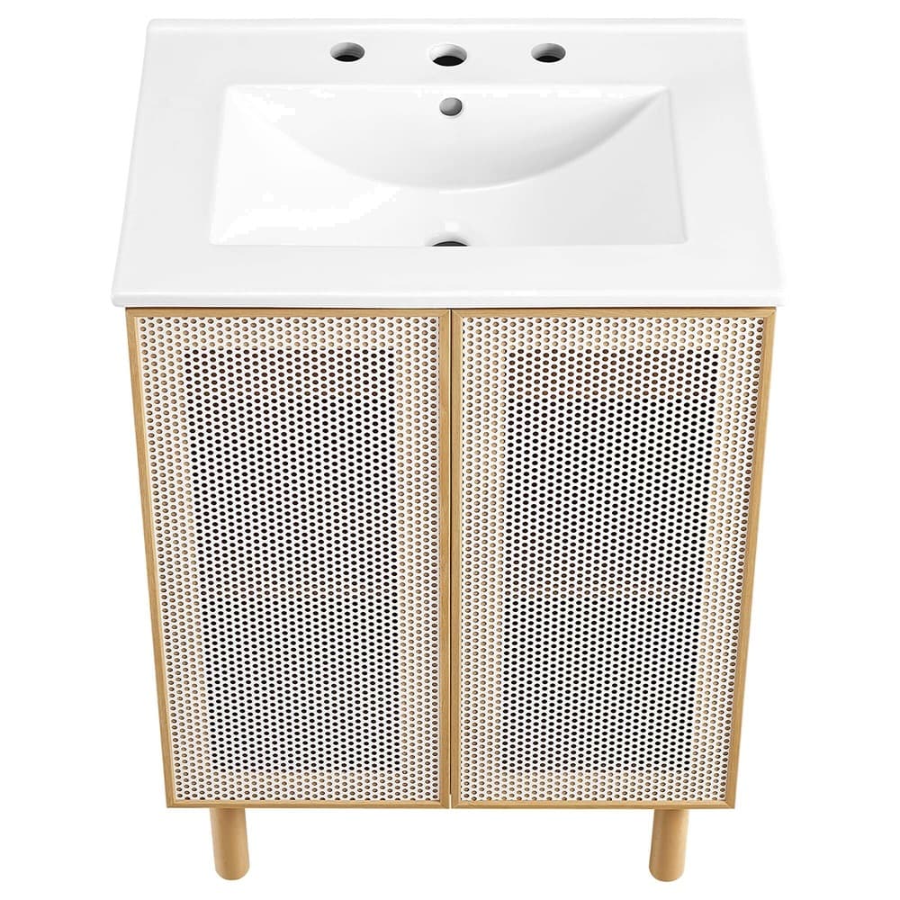 Calla 24″ Perforated Metal Bathroom Vanity in White Oak by Modway