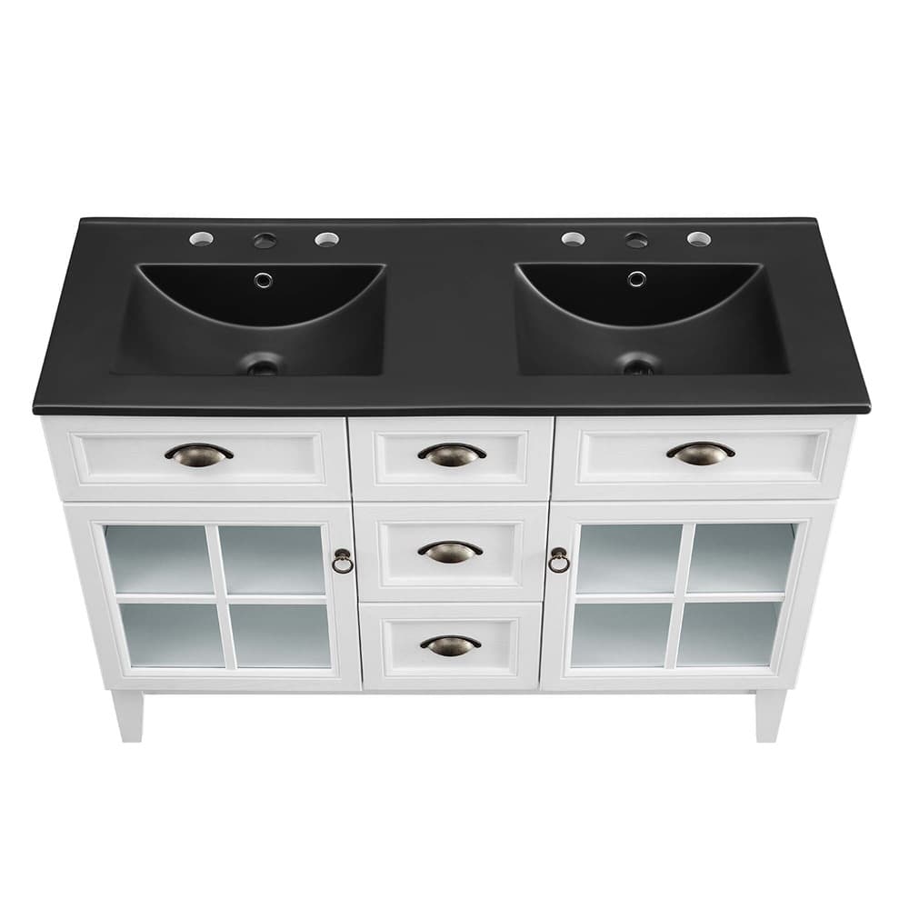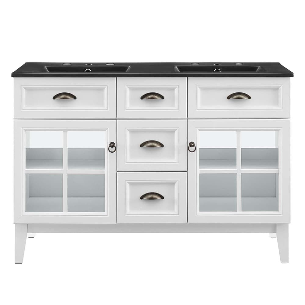 Isle 48″ Double Bathroom Vanity Cabinet in White Black by Modway