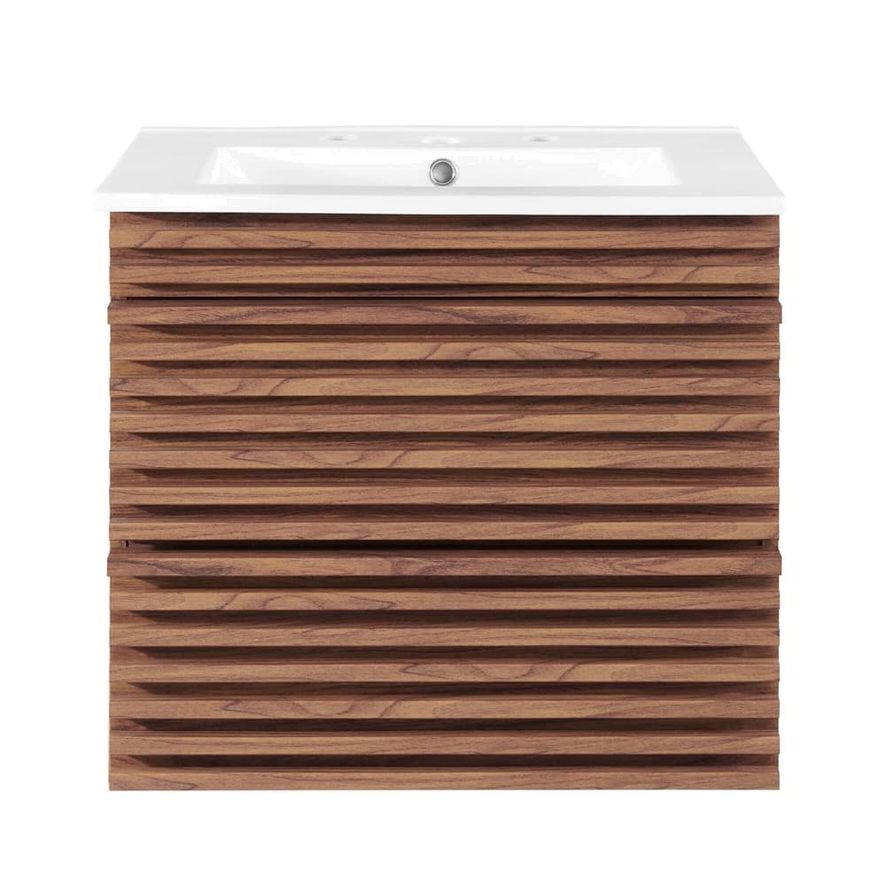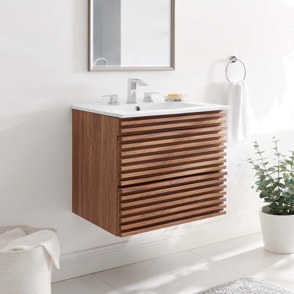 Render 24″ Wall-Mount Bathroom Vanity in Walnut White by Modway