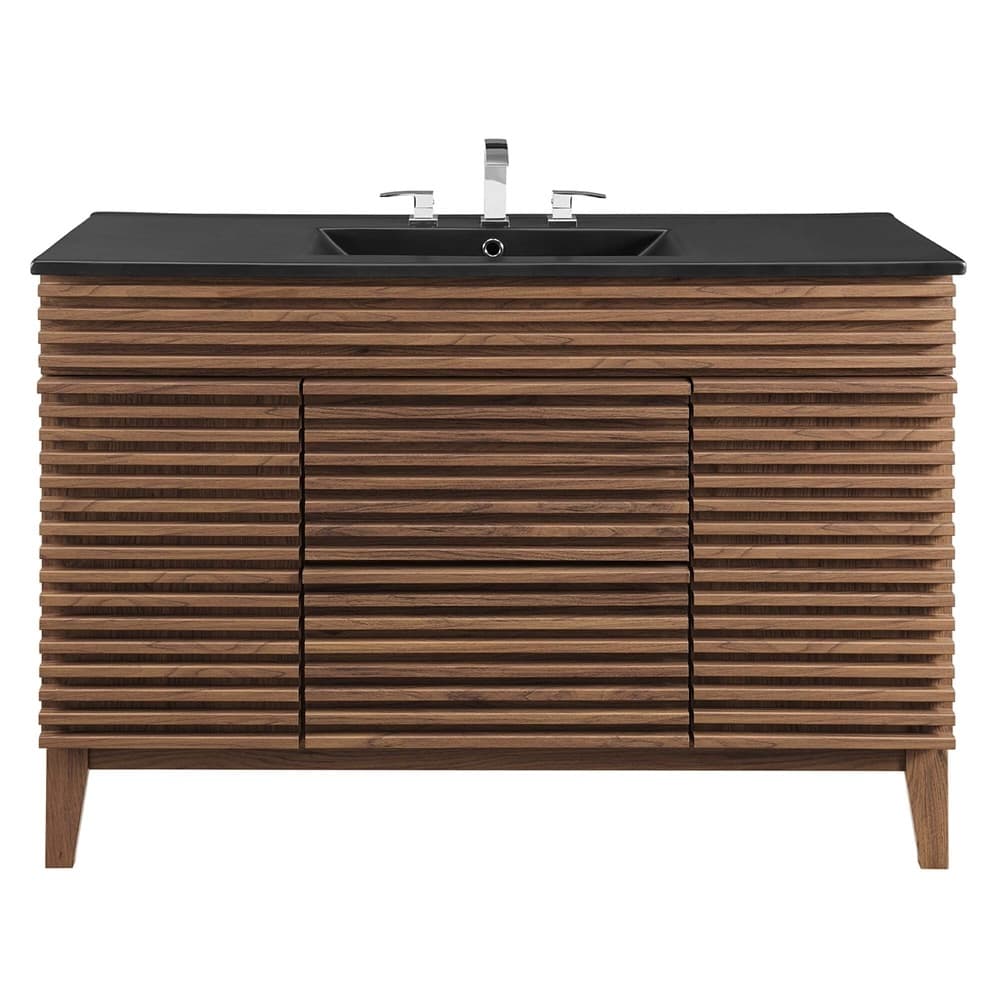 Render 48″ Single Sink Bathroom Vanity in Walnut Black by Modway