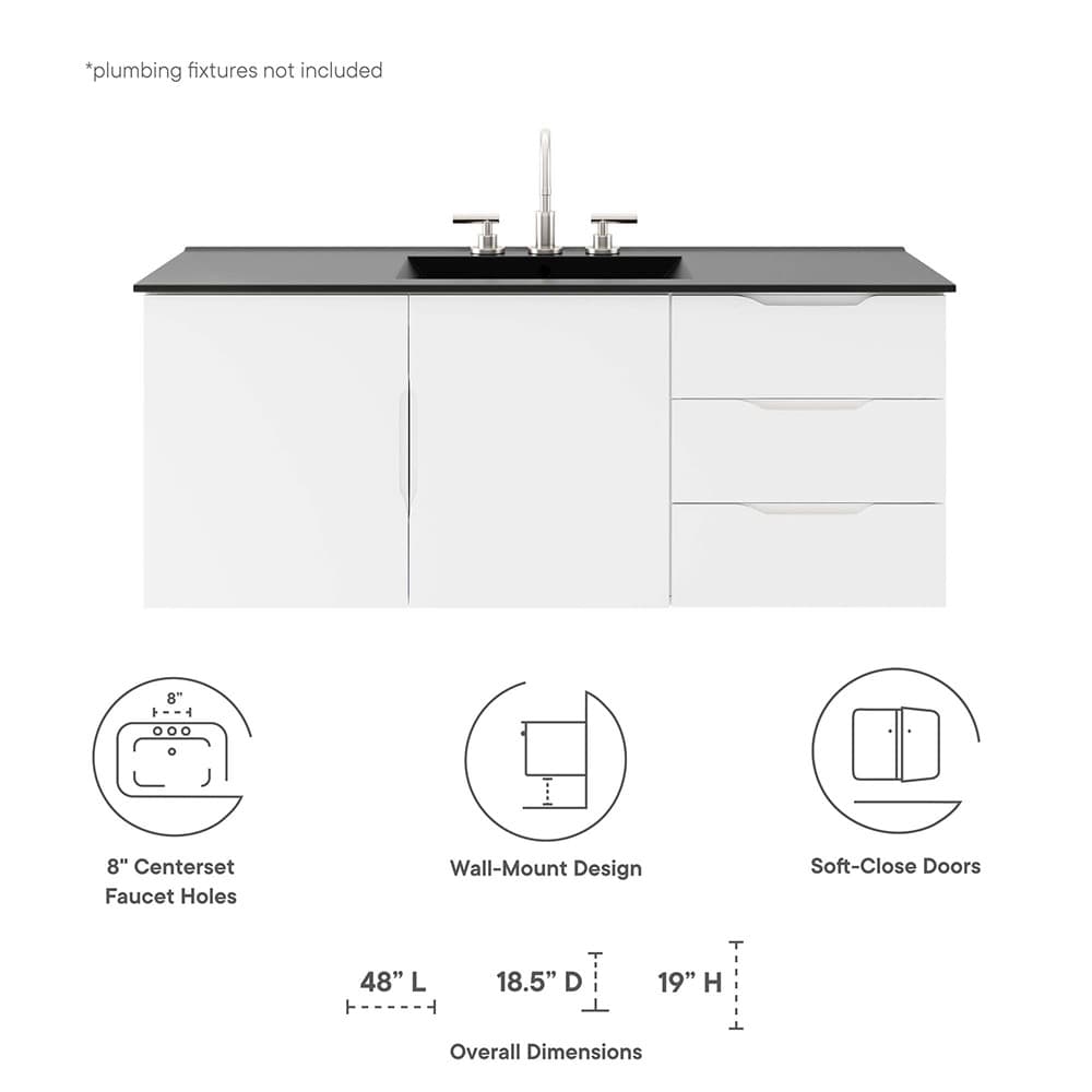 Vitality 48″ Single Sink Bathroom Vanity in White Black by Modway