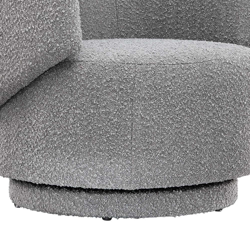 Introduce appreciated texture to a living room, entryway, bedroom, office, or other seating area with the Celestia Boucle Fabric Swivel Chair. Featuring a curved silhouette with angular details, this accent chair abounds in luxe modern style. This swivel chair is upholstered in durable boucle fabric that boasts a charming nubby texture. Dense foam padding offers a premium seating experience while the swivel base allows this upholstered chair to effortlessly rotate to suit the needs of the moment. Comes fully assembled. Weight Capacity: 330 lbs.