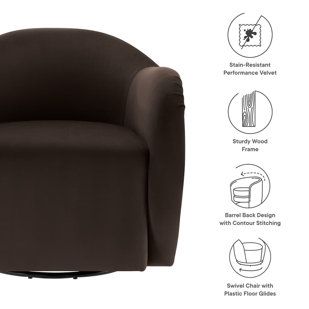 Compose Performance Velvet Swivel Armchair in Chocolate Brown by Modway