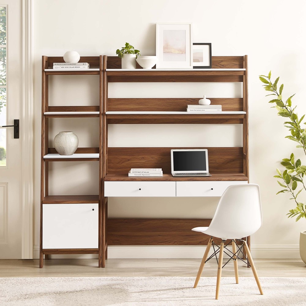 Bixby 2-Piece Wood Office Desk and Bookshelf by Modway in Walnut White by Modway