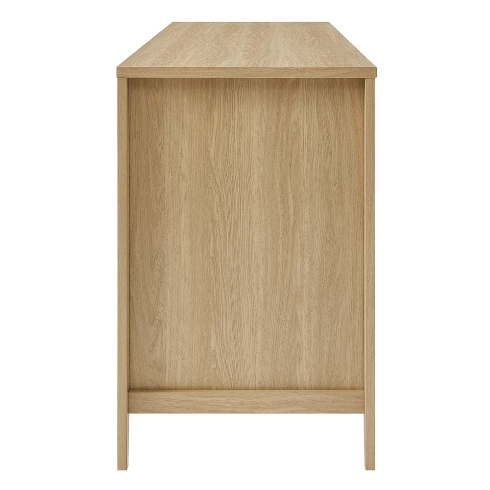 Introduce refreshing style to your workplace with the Soma 63″ Office Desk. Showcasing a beautiful rattan weave on the fronts of the storage areas, this computer desk brings organic aesthetics and modern functionality to the office, lounge area, apartment, college dorm room, or other workspace. This writing desk is crafted from durable MDF and particleboard with a natural wood grain finish. This home office desk is complete with a slide-out keyboard tray and concealed storage areas behind a cabinet door and in two spacious drawers to keep visual space clean and office essentials neat and organized. Includes non-marking foot pads to protect flooring. Assembly required. Tabletop Weight Capacity: 200 lbs.