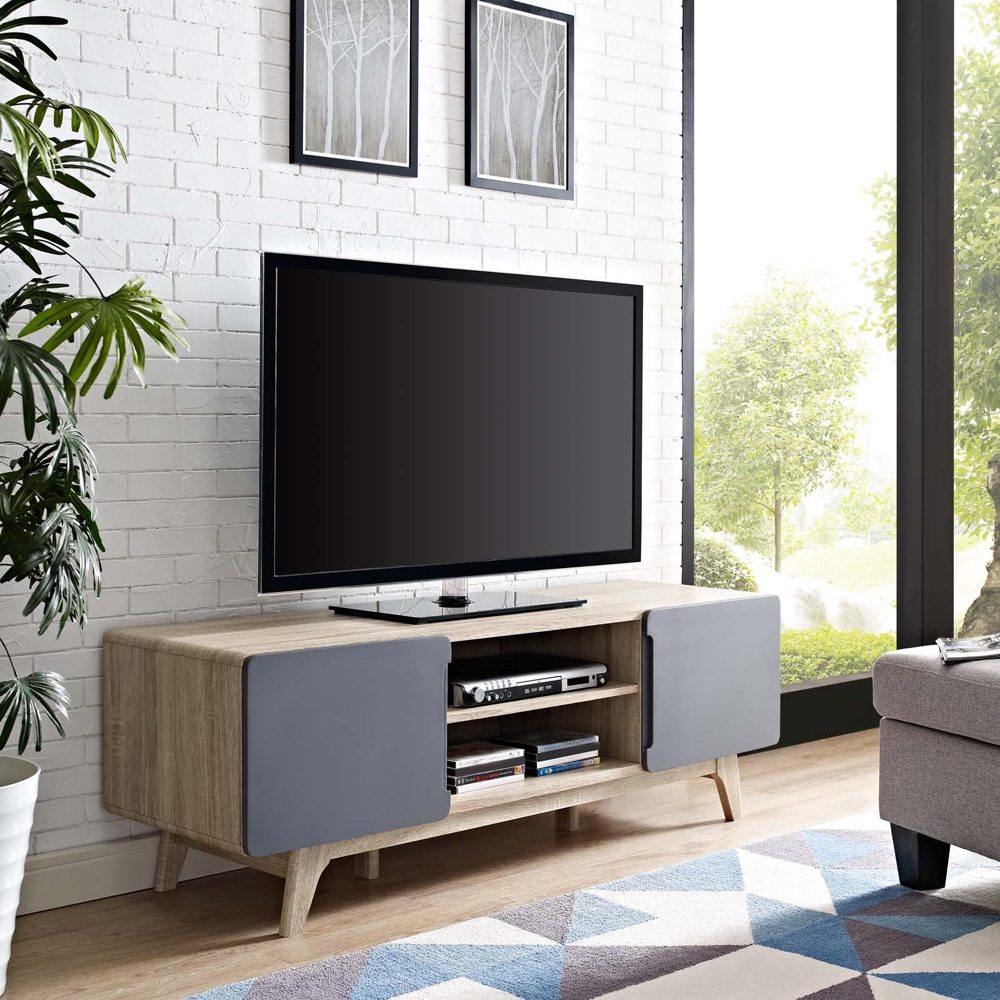 Tread 59″ TV Stand in Natural and Gray by Modway