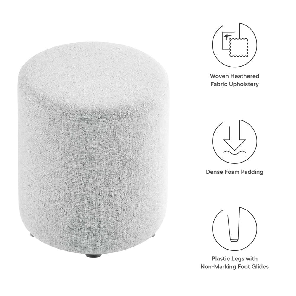 Callum 16″ Round Woven Heathered Fabric Upholstered Ottoman in Heathered Weave Light Gray by Modway