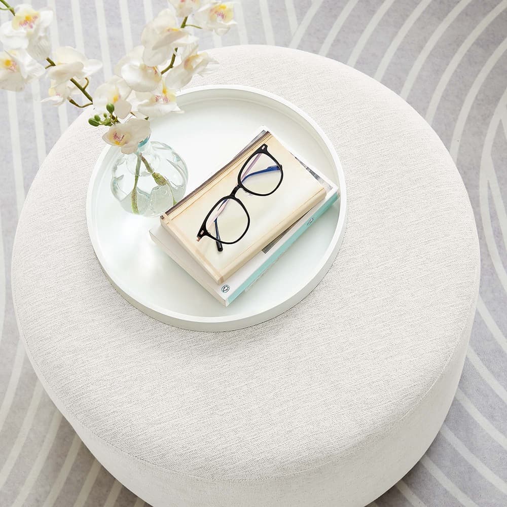 Includes: One – Callum Large 23″ Round Woven Heathered Fabric Upholstered Ottoman