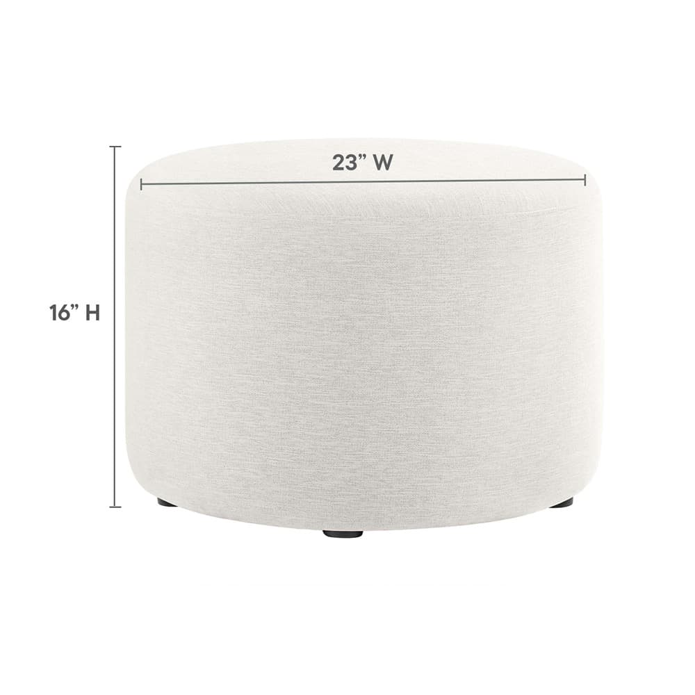 Callum Large 23″ Round Woven Heathered Fabric Upholstered Ottoman in Heathered Weave Ivory by Modway