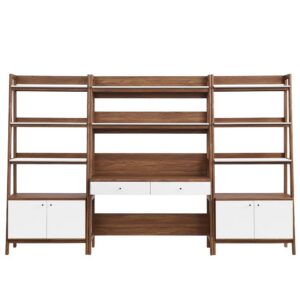 Bixby 3-Piece Wood Office Desk and Bookshelf by Modway in Walnut White by Modway