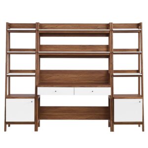 Bixby 3-Piece Wood Office Desk and Bookshelf by Modway in Walnut White by Modway