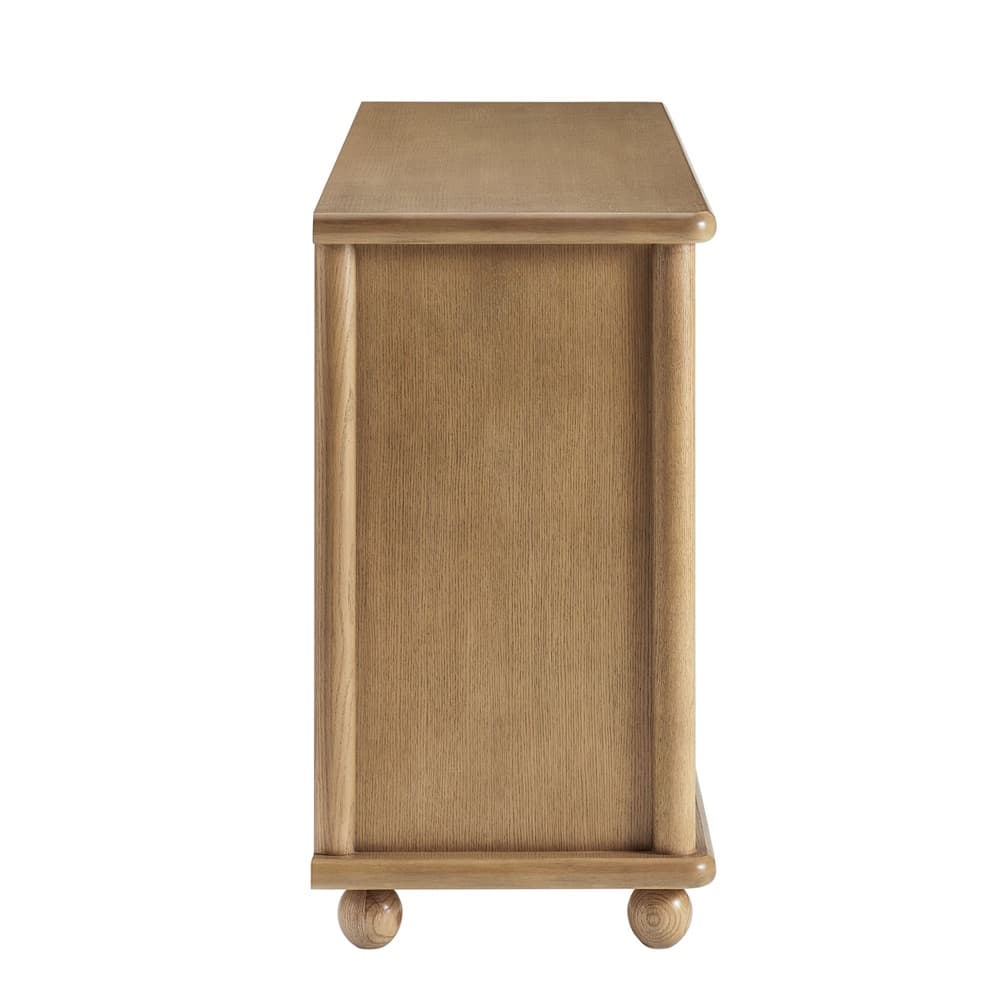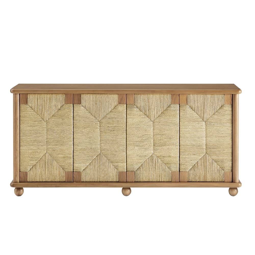 Designed for flexibility, the Marola cabinet combines generous storage with a clean, modern look. Crafted from solid oak wood and accented with woven seagrass doors, it brings a light, airy touch that feels both fresh and timeless. Behind four doors, adjustable shelves offer plenty of room for dinnerware, linens, or media. Measuring 71 inches wide, this cabinet with doors and cable management transitions easily between spaces, serving as a sideboard buffet cabinet in the dining room, a storage cabinet in the living room for décor and electronics, or even as a TV stand for wall-mounted TVs. Weight capacity; Top : 346lb, Top Shelf : 20lb, Bottom Shelf : 20lb.