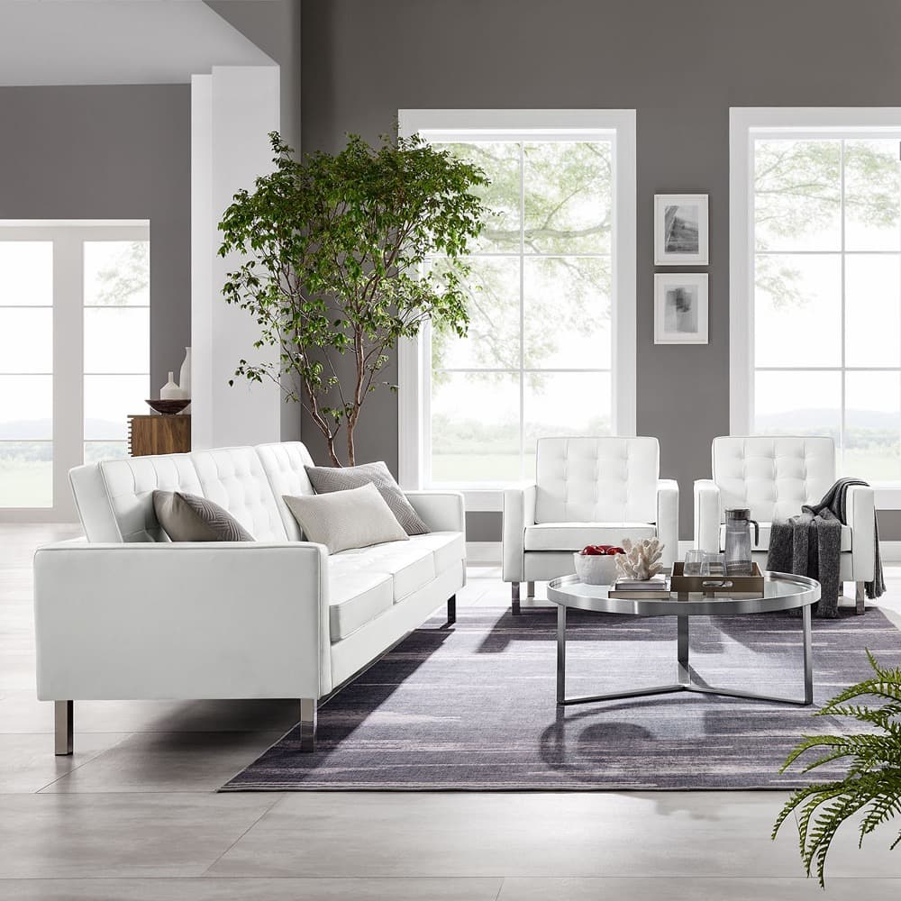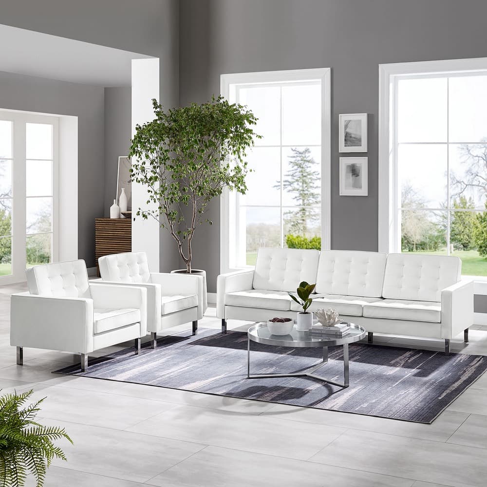 Loft 3-Piece Tufted Vegan Leather Furniture Set in Silver White by Modway