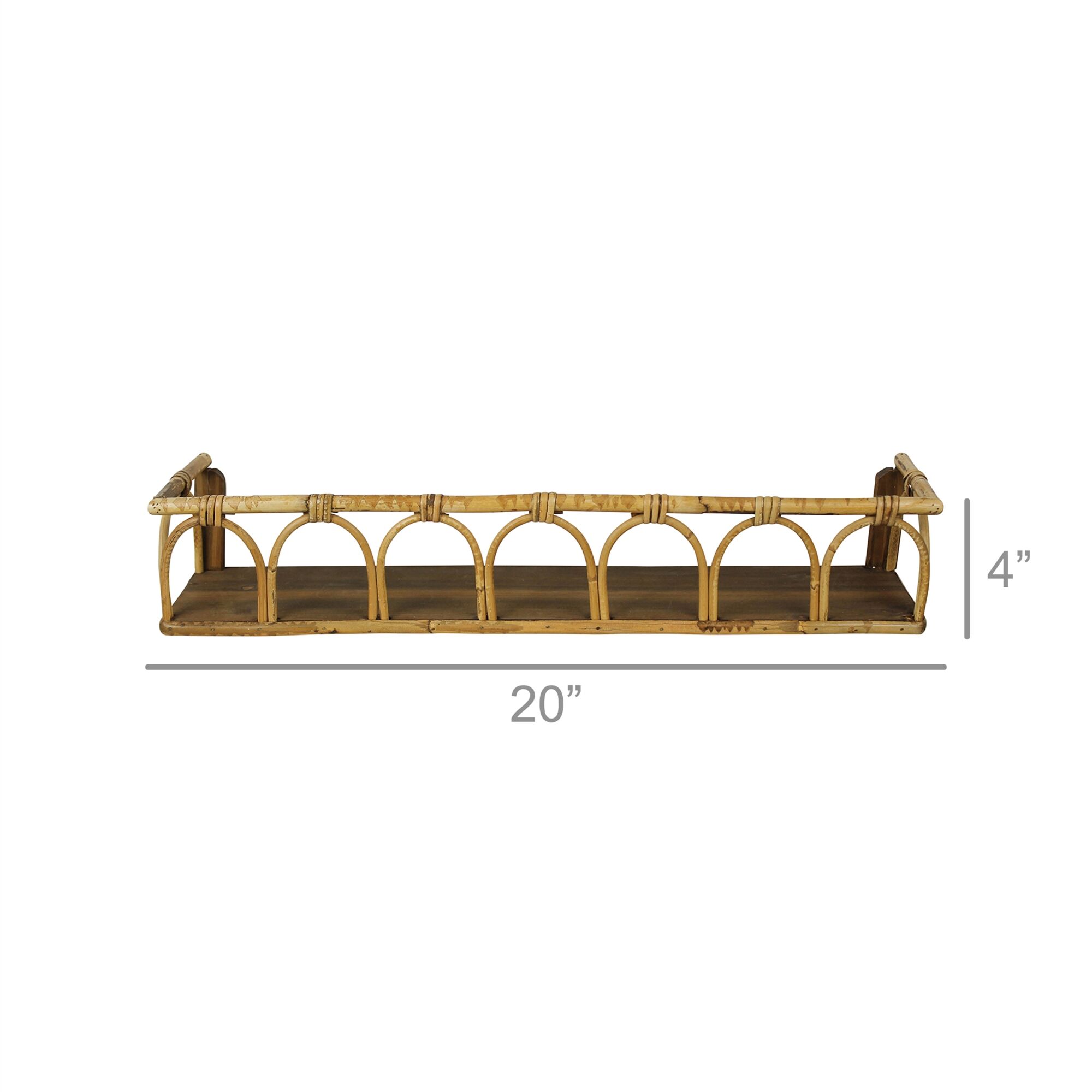 Crafted of rattan and offering bohemian-chic style to shelve bathroom essentials or to create a petite entryway vignette. Hangs with two hidden hangers.