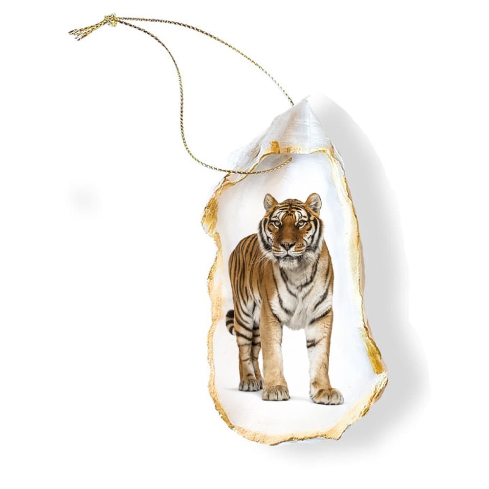 Tiger Decoupage on Oyster Shell Ornament by Roux Brands