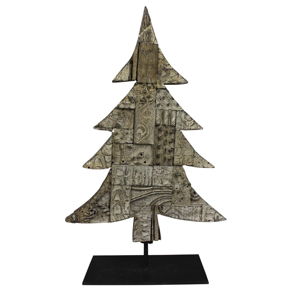 Crafted of vintage wood block prints this 2-sided tree creates a rustic and intriguing piece for holiday décor.
