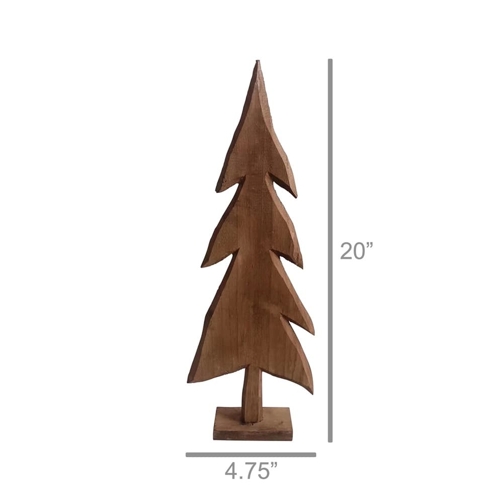 Simple, swaying tree silhouettes carved of natural wood come together to create a fanciful forest of undulating heights.
