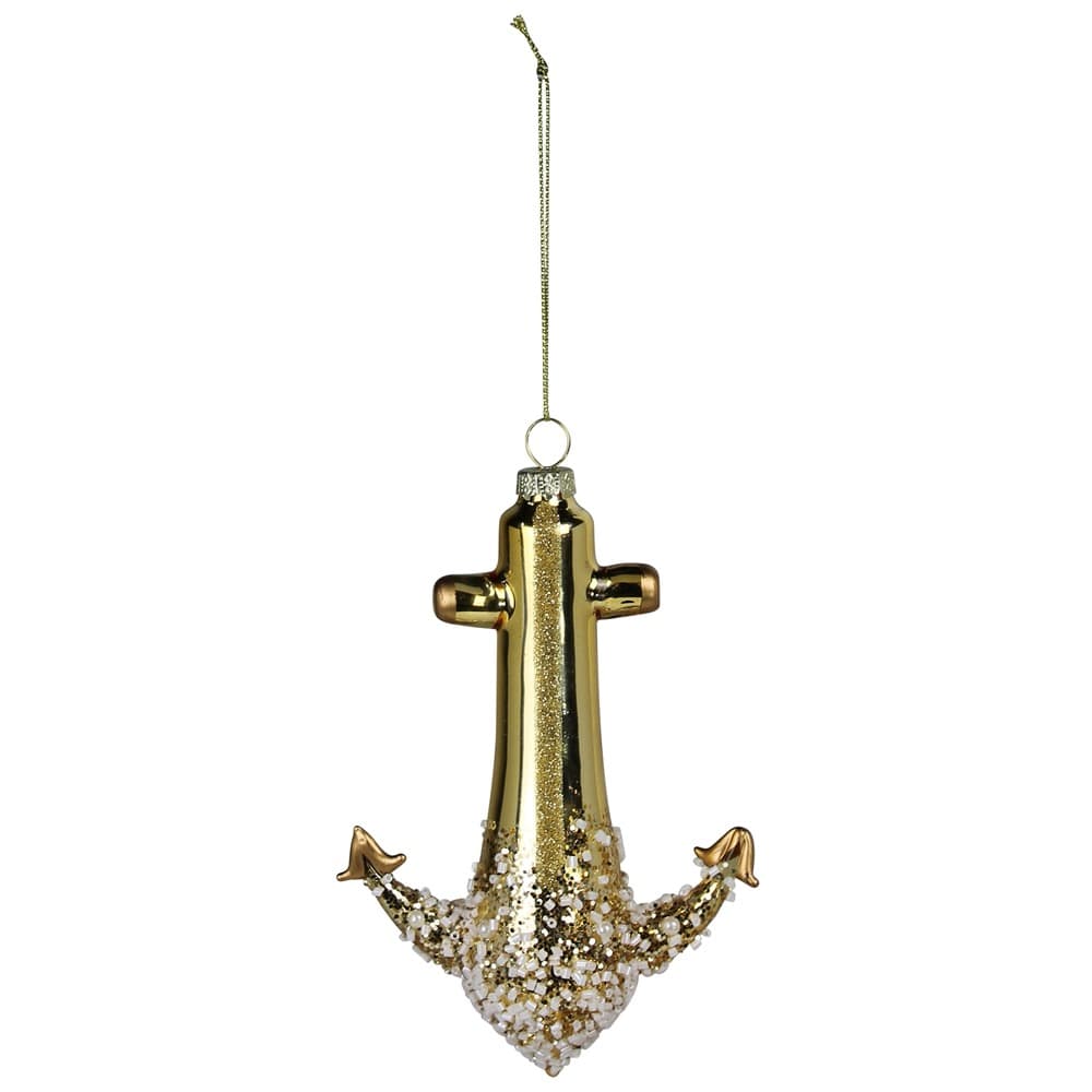 This gold glass anchor ornament exudes nautical elegance, with its shimmering finish and classic design. A stunning addition to your holiday tree, it brings both warmth and sophistication to your festive decor.