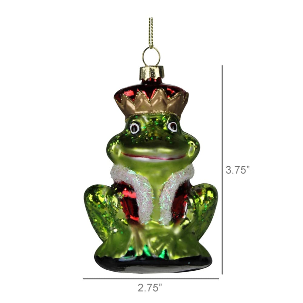 This enchanting glass Frog Prince ornament brings fairy-tale charm to your holiday tree. Handcrafted with vibrant colors and delicate details, it adds a whimsical, magical touch to your festive decor, inviting a storybook feel to your celebrations.