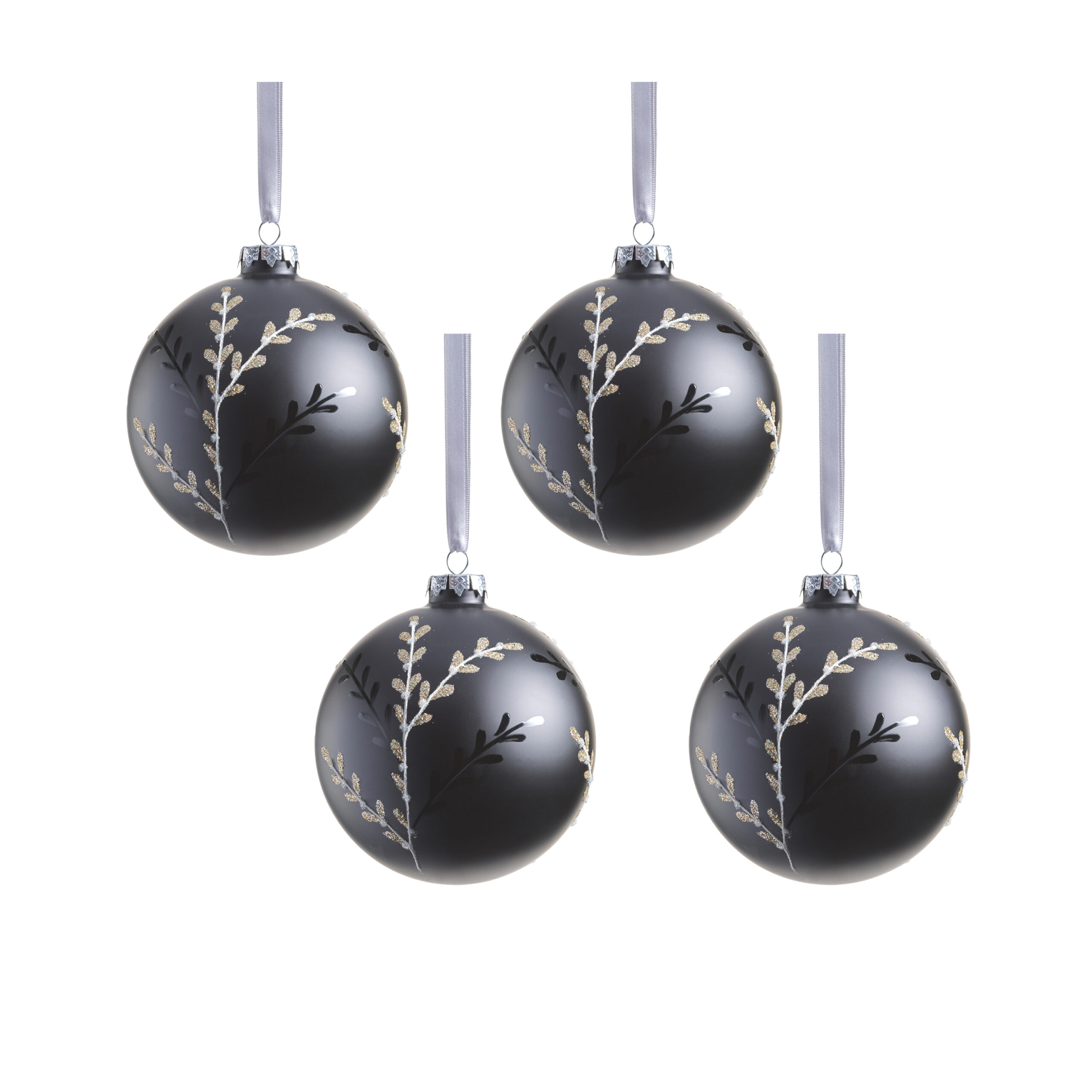 Patrin 4.75″ Glass Ball Ornaments with Leaf Pattern, Set of 4 by Zodax