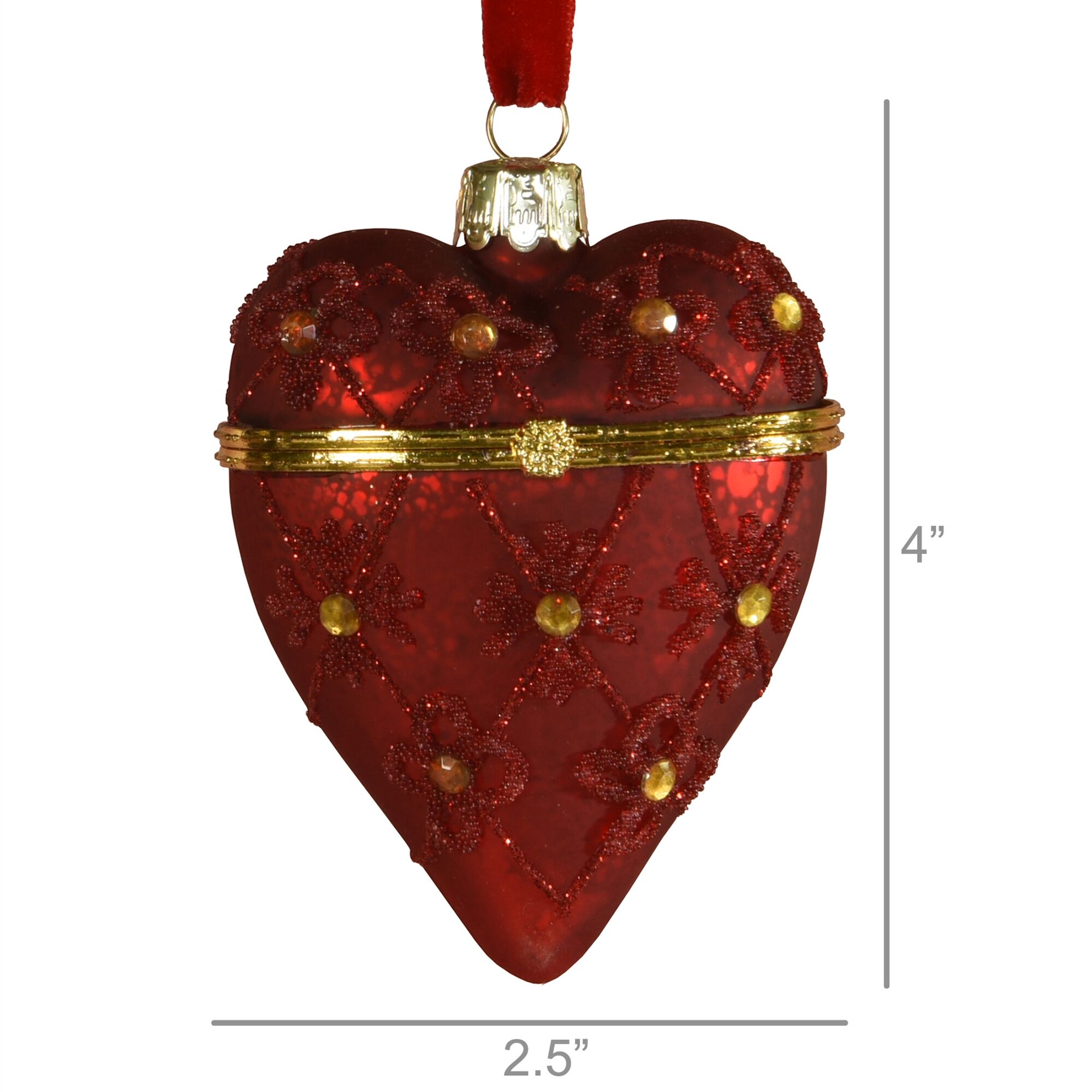 Red Glass Bejeweled Heart Locket Ornament Set of 2 by HomArt
