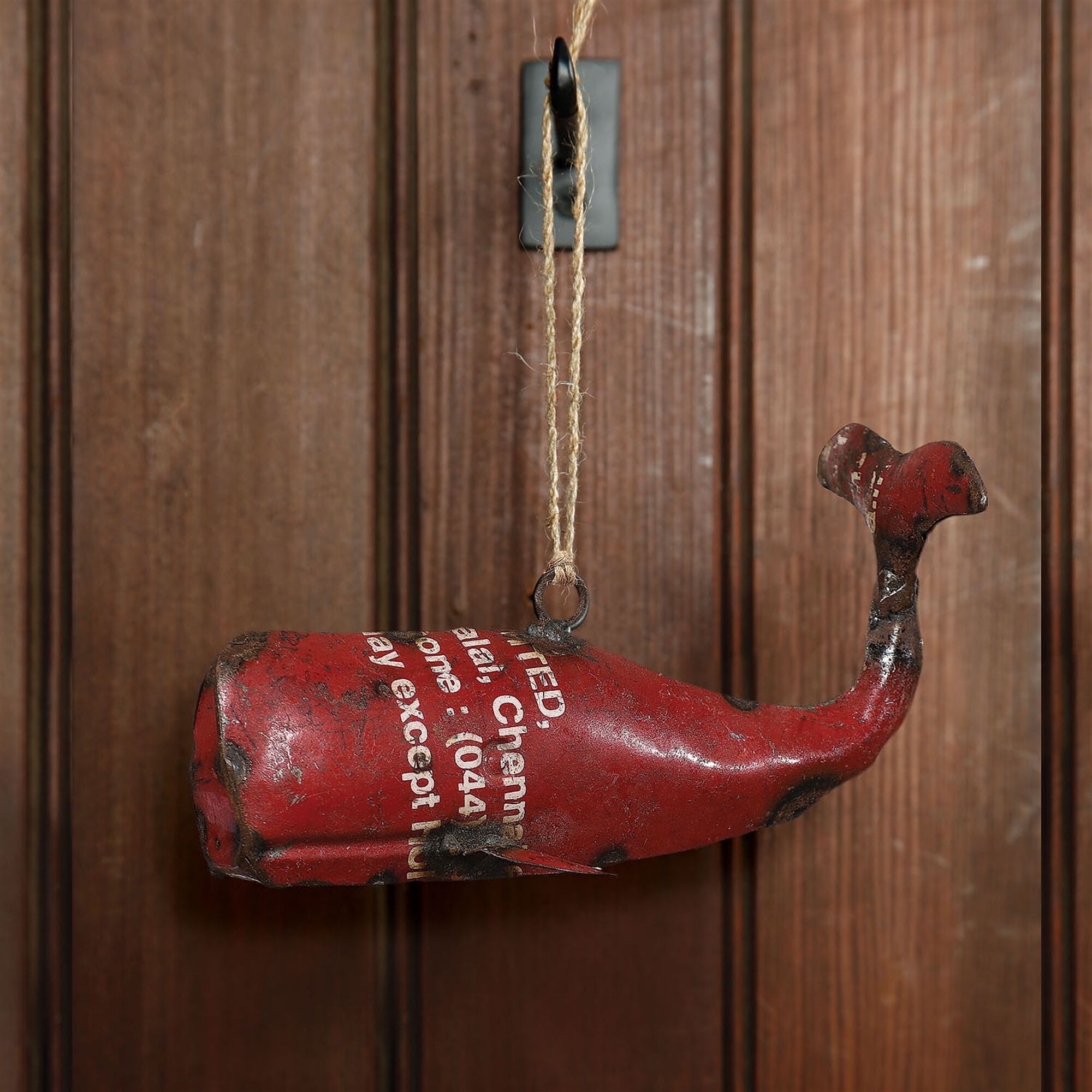 Red Reclaimed Metal Whale Ornament Set of 2 by HomArt