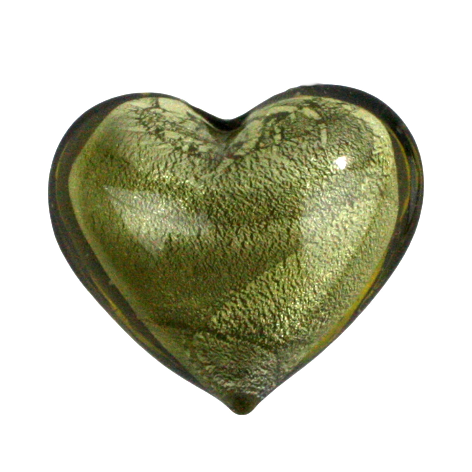Olive and Gold Venetian Glass Heart Set of 10 by HomArt