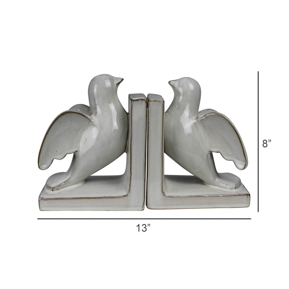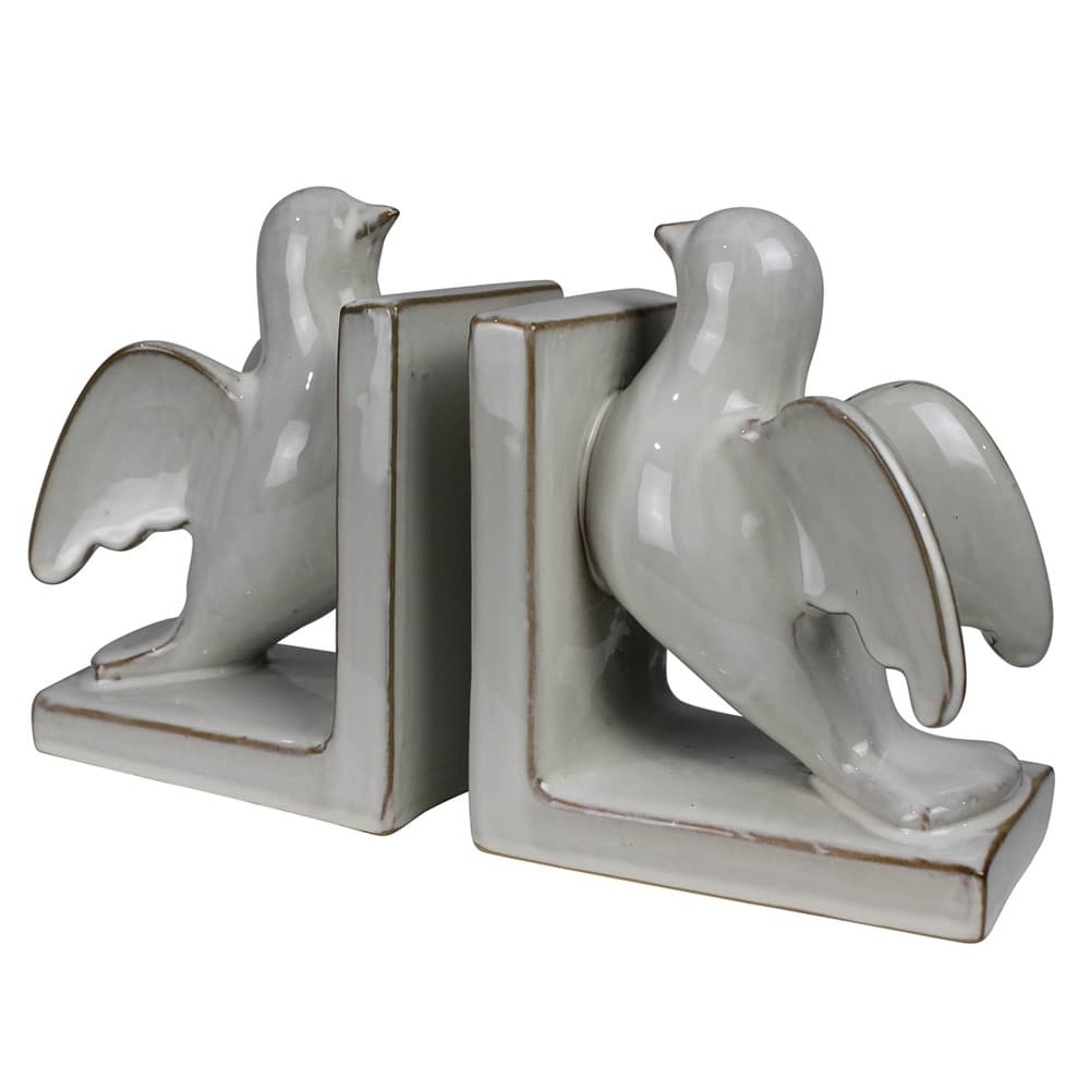 Two mighty birds, cast in ceramic are captured in flight and ready to hold up a row of books. A perfect compliment to any gardener or bird lovers library.
