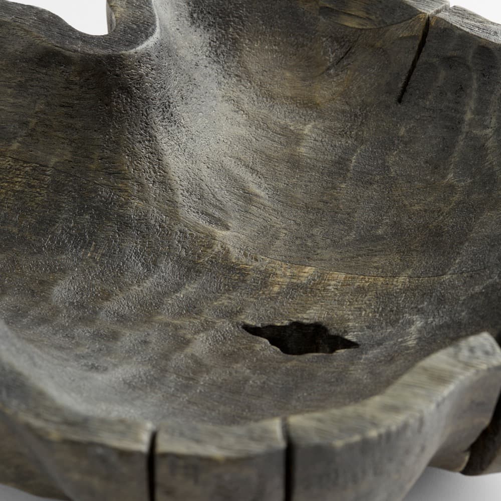 With its organic curves and natural edges, the Bovina trays make a statement of rustic refinement. Made from 100% Adru wood in a washed black finish, the spectacular striations in the grain make this beautiful bowl a compelling centerpiece of any living space.