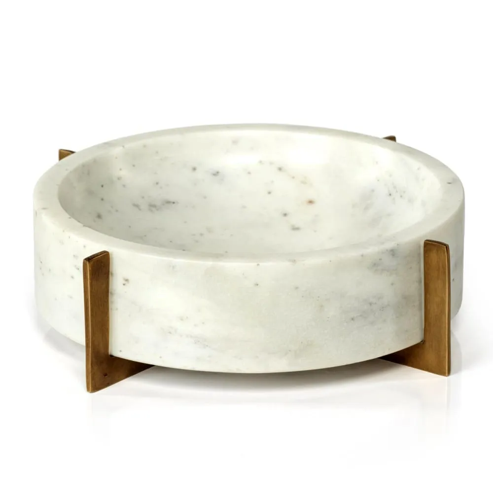 Nairobi White Marble Bowl on Gold Metal Base by Zodax
