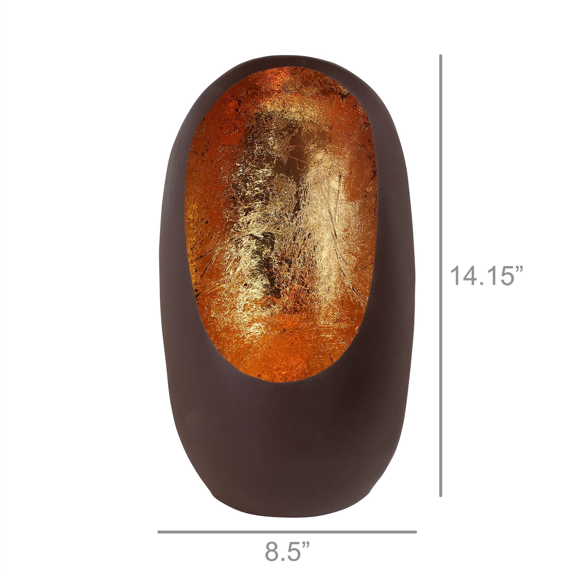 A striking way to add candlelight to any room – a matte rust exterior and gold leaf interior catch the glow of the flame and reverberate the light back into the environment. Simple mount. Tealight Candle not included.
