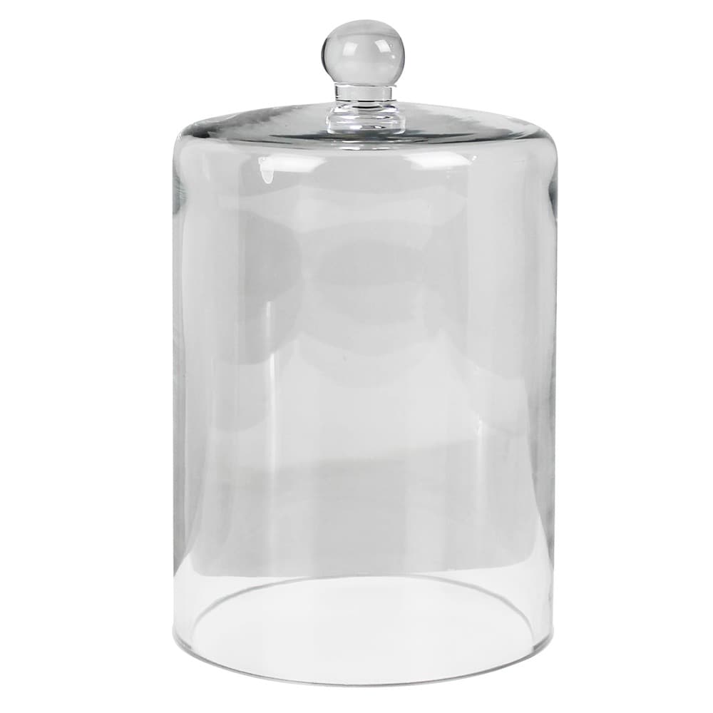 This perfectly proportioned glass dome with squared shoulders is ever versatile – from showcasing a fragranced candle to protecting a perfect cupcake. This is a clear glass dome (not grey as in the photo).