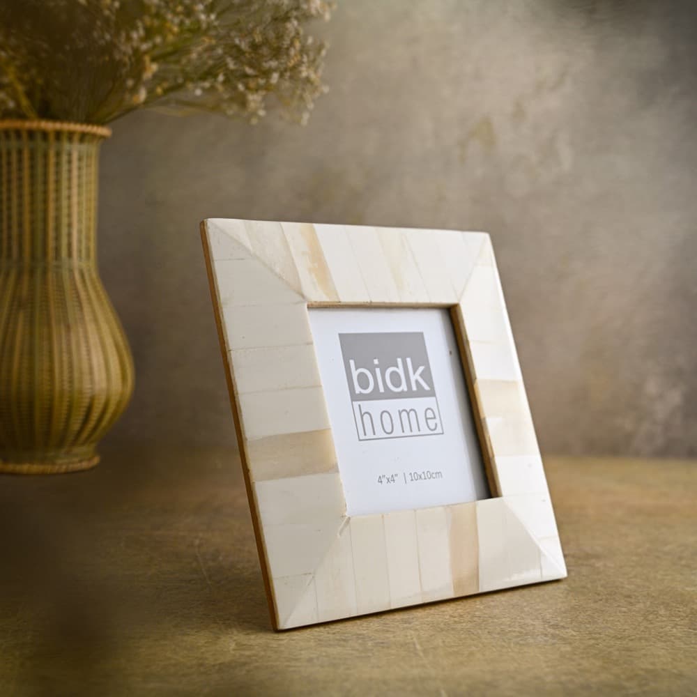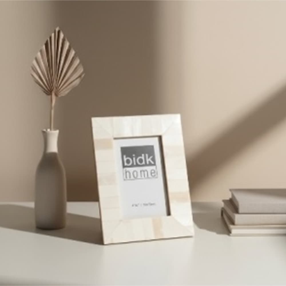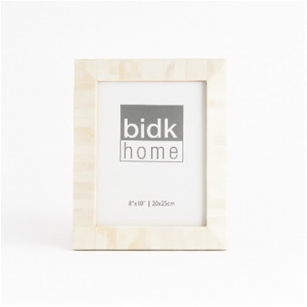 Experience the simplistic elegance of the 8×10″ White Bone Picture Frame by BIDKhome. This timeless piece will beautifully showcase your cherished memories. The meticulous craftsmanship and fine detailing make it a stunning addition to any room. A product of our brand’s dedication to importing unique, ever-changing designs, this frame embodies both traditional and contemporary aesthetics.