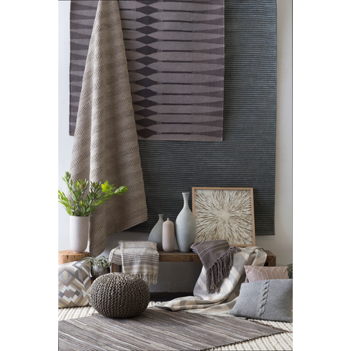 Slate and Ivory Anthracite Leather Pouf by Livabliss