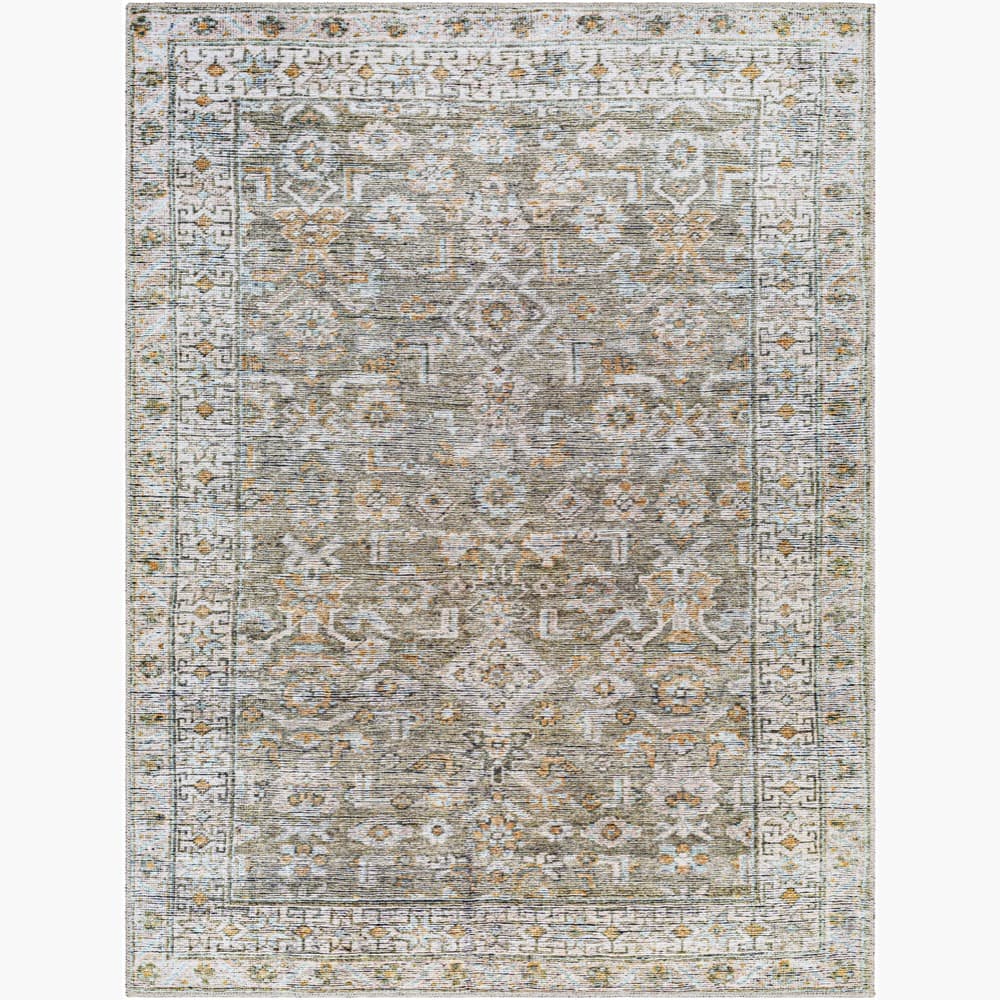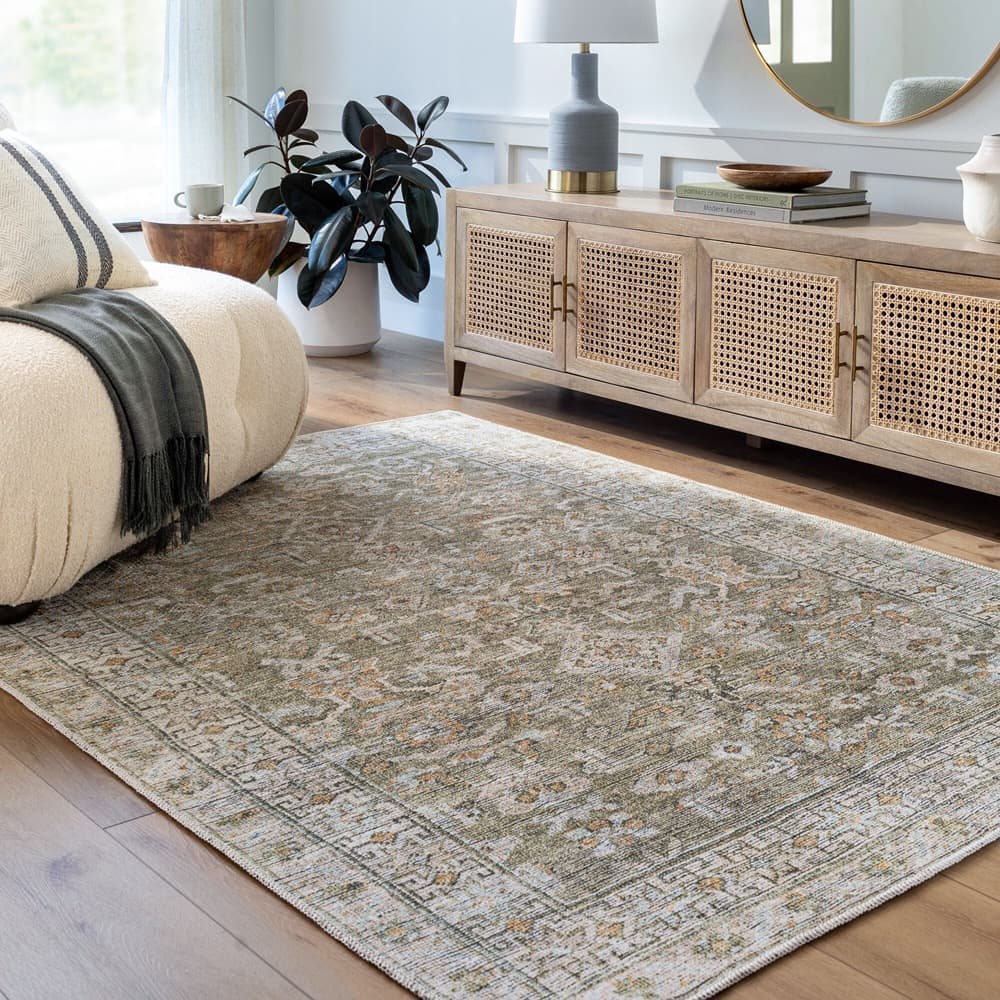 Introducing the Darling Collection area rug, a remarkable collaboration between Becki Owens x Livabliss that beautifully blends traditional and geometric designs into a tapestry of style. This Updated Traditional piece features an antique fade, transforming your space with its earthy shades of dusty brown, off-white and faded clay, accented with hints of faded sky blue. Made in Turkey and machine woven from durable polyester, this no-pile rug is perfect for high-traffic areas. For an optimal experience, we recommend using this rug with a pad. It’s also easy to care for – simply machine wash it on delicate cycle when needed, lay flat to dry and enjoy the renewed vibrancy it brings to your room.
